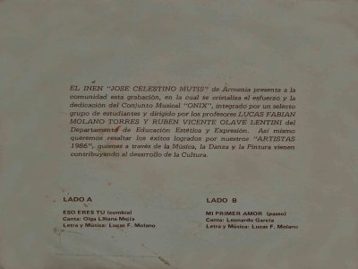 INEM José Celestino Mutis a sus artistas 1986. Departamento Estético