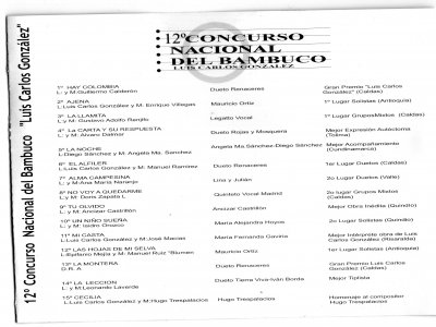 Dueto Lina y Julián, Segundo Lugar Duetos en el XII Concurso Nacional del Bambuco Luis Carlos González 2003