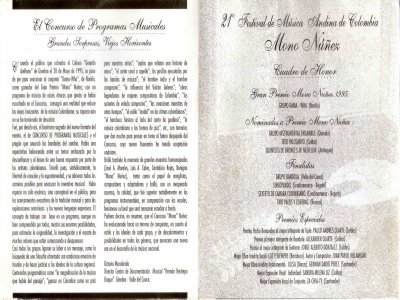 Cuarteto Ensamble Instrumental. Dir. Héctor Fabio Torres Cardona, Rolando Ramos-bandola- (Calarcá), Leonardo García-bandola- (Armenia), Jairo Andrés Cardona-guitarra- (Calarcá) y Camilo Augusto Ramírez-tiple- (Calarcá). Nominados a Premio Mono Núñez 1995.